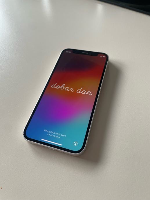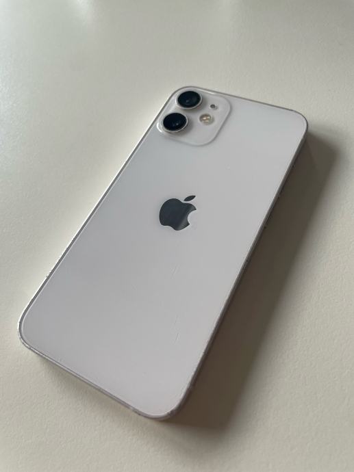 Prodajem rabljeni Apple iPhone 12 mini s 64GB interne memorije, bijele boje. Baterija na 72%, stanje očuvano za model ove generacije.