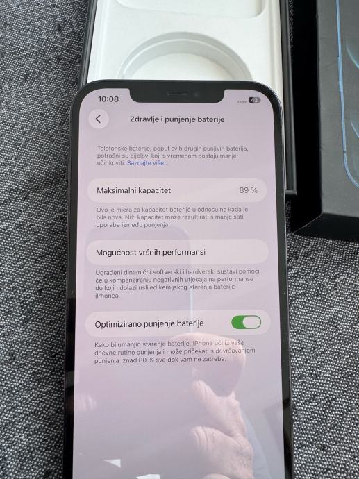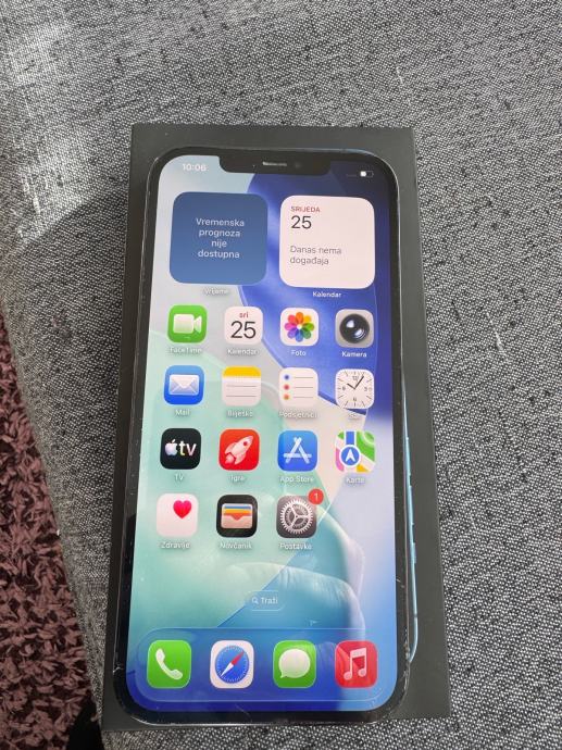 Prodajem iPhone 12 Pro Max s 128GB memorije u plavoj boji (Pacific Blue). Uređaj dolazi s originalnom kutijom. Kapacitet baterije iznosi 89%.U odličnom Stanju bez oštečenj.