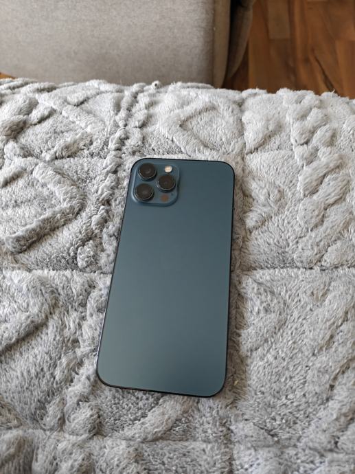 Prodajem rabljeni iPhone 12 Pro Max s 128GB interne memorije u plavoj boji (Pacific Blue). Stanje baterije 83%