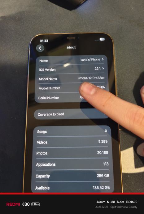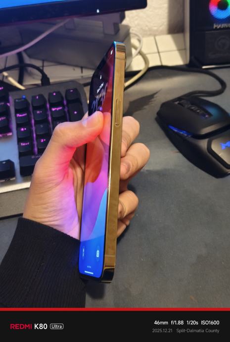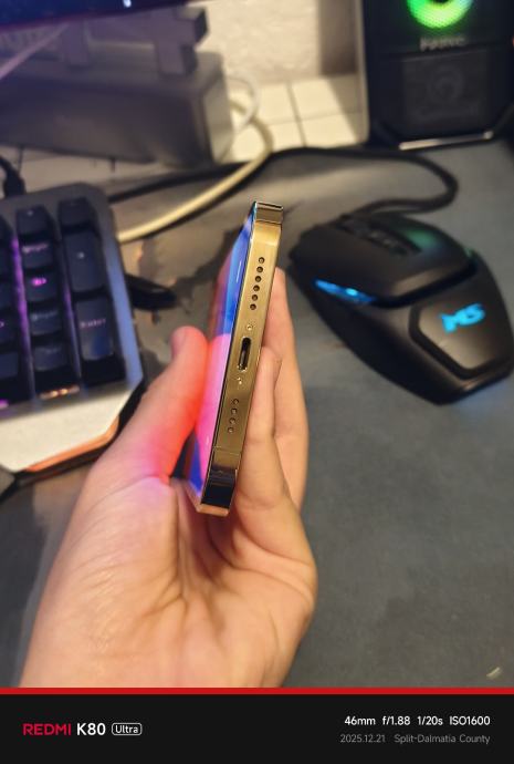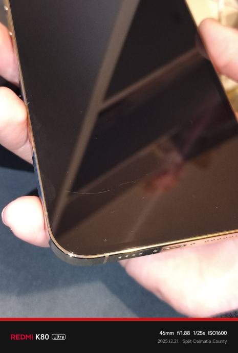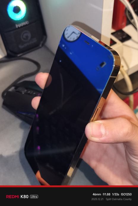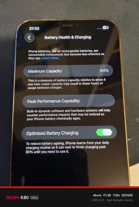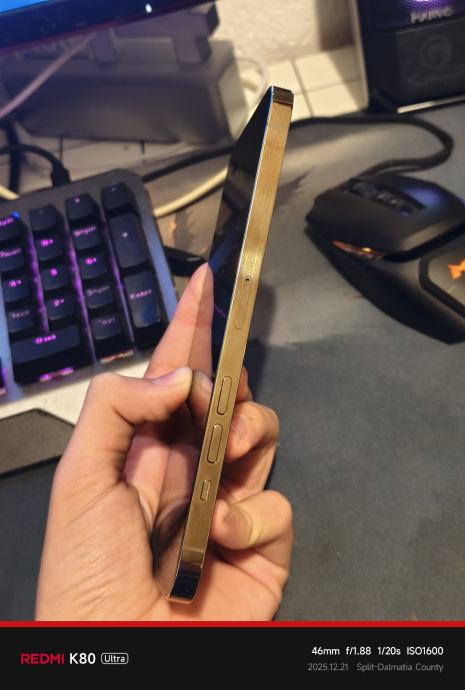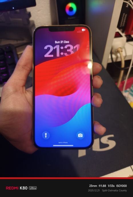 Mobitel je u super stanju, nema ni jednu ogrebu na poklopcu i kućištu ali ima jednu ogrebu na ekranu. Sve normalno radi, 84% zdravlje baterije. Dođe s originalnom MagSafe prozirnom maskicom.
