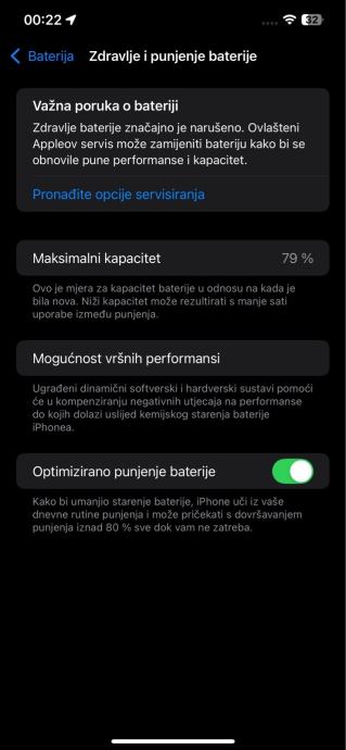 -Originalna baterija – zdravlje 79% (izdrži otprilike jedan dan uz normalno korištenje)