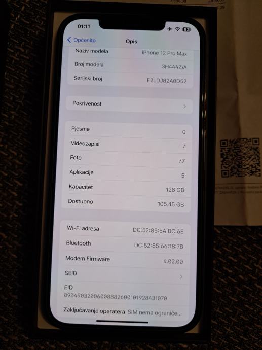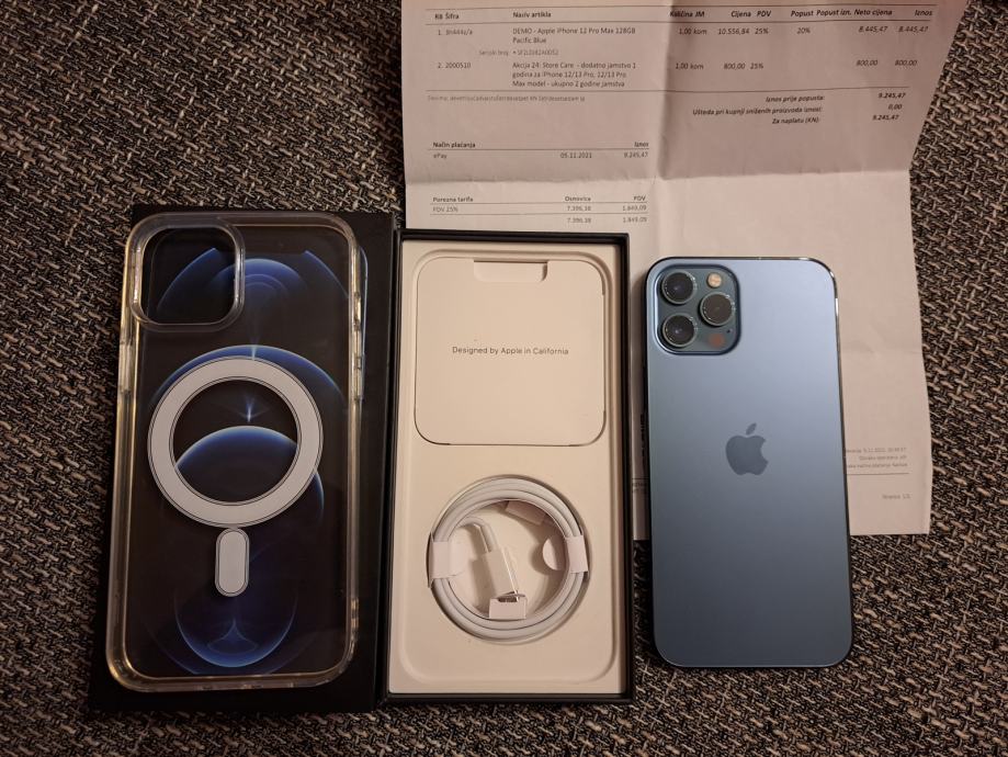 Na prodaju Iphone 12 Pro Max stanje 10/10 ,nema greške sve ispravno, ima produljenu garanciju koja traje do 05.11.2023. Zdravlje baterije 87% izdrži dva dana bez punjenja, uz njega ide kutija, račun, mag safe maska, i zaštita oko kamere. Cijena 650€