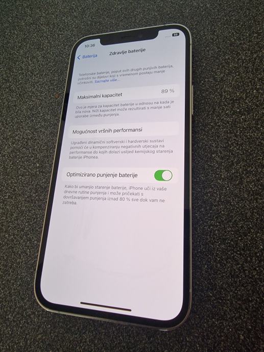 Zdravlje baterije je na 89% tvorničke vrijednosti (originalna Apple baterija).