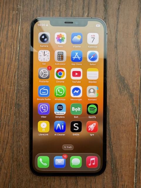 prodajem iPhone 12 Pro 128 GB, graphite (srebrno sivo vrhunsko kučište PRO razine - vidjeti slike), otključan na sve mreže, hrvatski meni i jezik, stalno u maski i sa kaljenim staklom za zaštitu ekrana, odlično stanje, bez ijedne crtice ili ogrebotine. Za više detalja u tražilicu upisati: "gsm arena iPhone 12 Pro 128 GB". Na mobitelu sve ispravno, baterija health (zdravlje) 84% (na jednoj od slika se vidi podatak). Napravljen je reset na tvorničke postavke, a mobitel je odjavljen sa clouda.