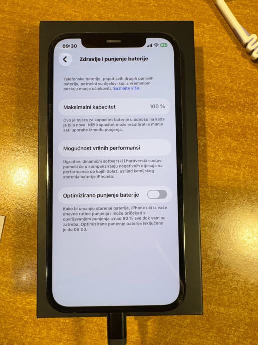 Prodajem iPhone 12 PRO sa 128GB memorije. Baterija je na 100% kapaciteta što potvrđuje i prikaz u postavkama uređaja. Telefon je u graphite boji s prepoznatljivim okvirom karakterističnim za PRO model. Uređaj je resetiran na tvorničke postavke i spreman za novog vlasnika.