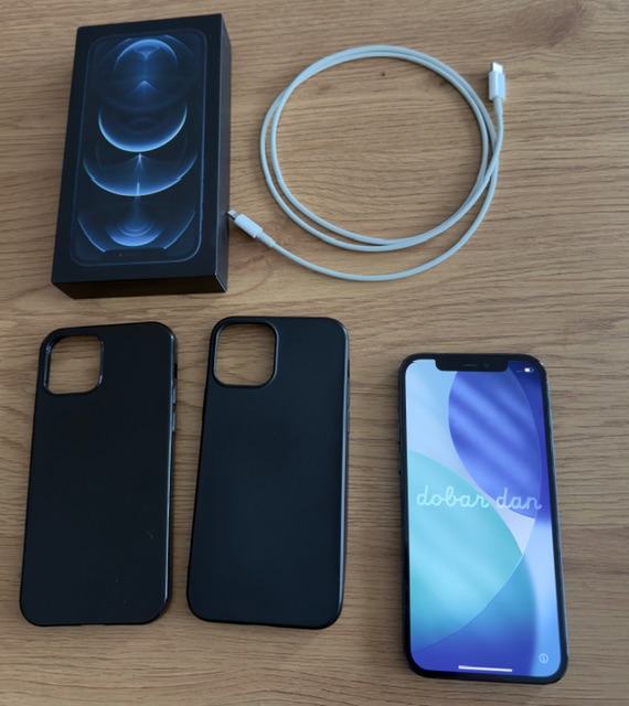 iPhone 12 Pro 128GB, potpuno ispravan, zdravlje baterije 80%, dvije maske, kutija, kabel za punjenje. Bez adaptera.