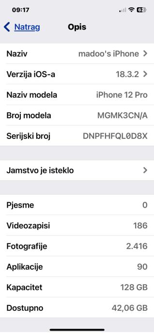 Prodajem iPhone 12 Pro, graphite 128 GB