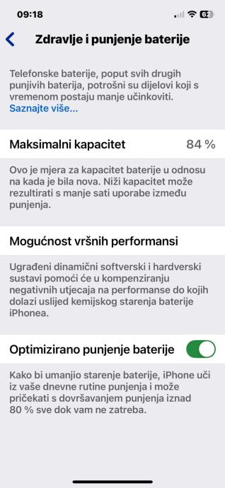 Zdravlje baterije 84%.
