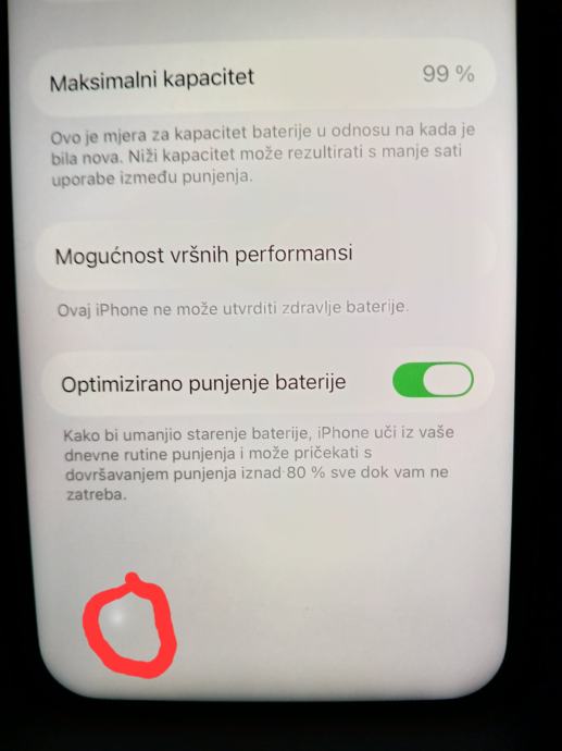 Ekran je mijenjan i ima malu bijelu točkicu (zaokružena), ali to ne smeta radu niti korištenju. Kućište ima tragove korištenja primjereno stanju, ništa što utječe na funkcionalnost.i od promjene ekrana face id ne radi