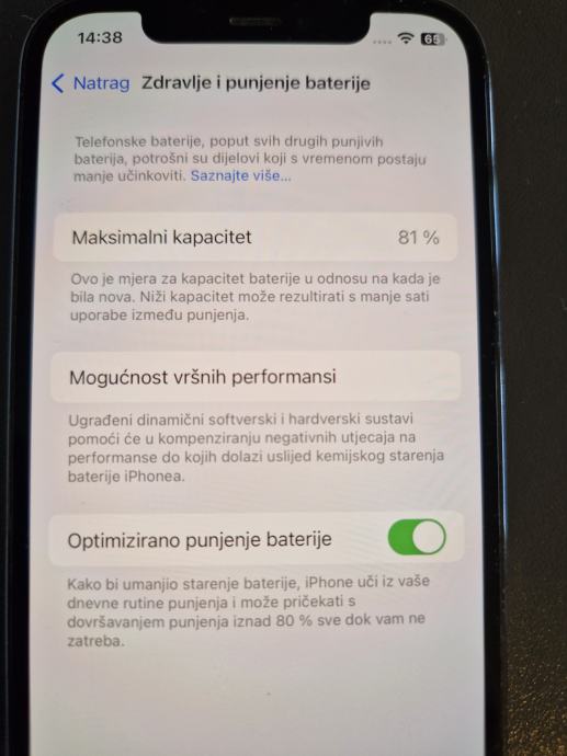 Prodaje se iPhone 12 Pro, Pacific Blue, 256GB, star 4 godine, kapacitet baterije 80%, mobitel od prvog dana radi odlično, na ekranu vidljivi znakovi korištenja (mikro ogrebotine koje ne smetaju pri radu), s stražnje strane na jednoj od kamera napuklo zaštitno staklo (vidi sliku), ne smeta pri slikanju, mobitel dolazi bez kutije, uz mobitel idu 2x zaštito staklo (novo), nova maskica, žičane slušalice (nikad korištene) i orginal kabel za punjenje,