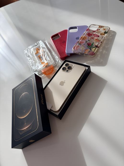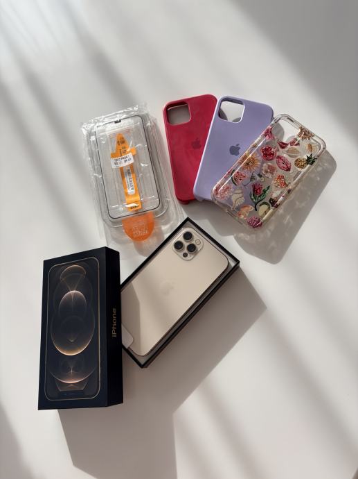 Iphone 12 pro zlatni, bez ogrebotine, sa kaljenim staklom, dolazi sa kutijom i pripadajućim kabelom, za sve informacije zvati na 0917973186