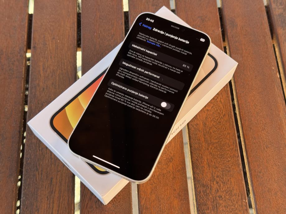 Zdravlje baterije je 85%, što znači da i dalje drži jako dobro i bez problema izgura cijeli dan normalnog korištenja. Sve radi savršeno – Face ID, kamere, zvučnici, tipke, ekran bez mrtvih piksela.