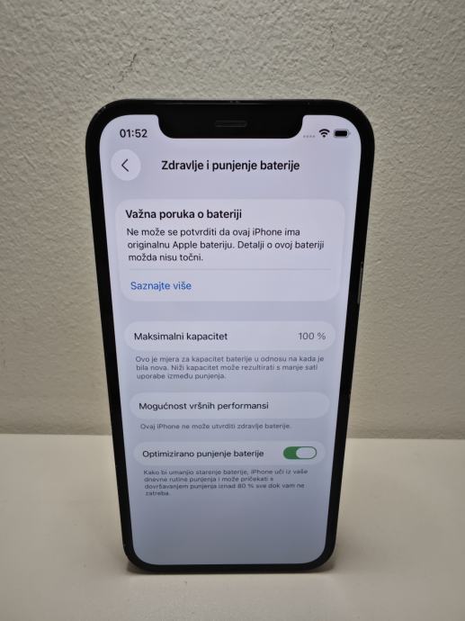 Rabljeni iPhone 12 128Gb u dobrom stanju sa novom ZAMJENSKOM baterijom (kvaliteta odmah ispod originalne). Vidljivi tragovi korištenja.