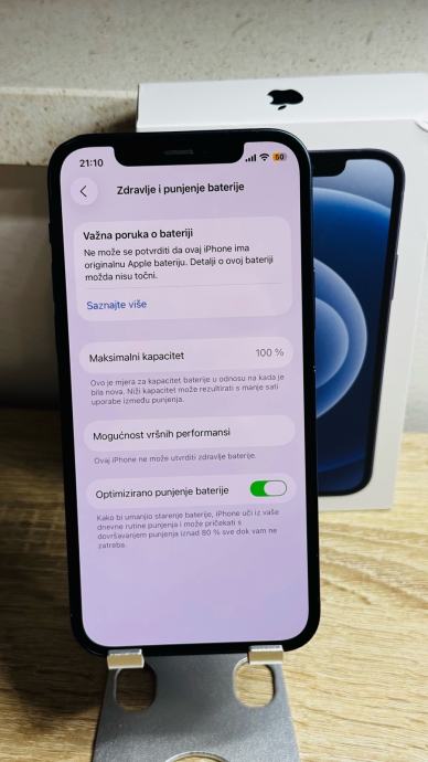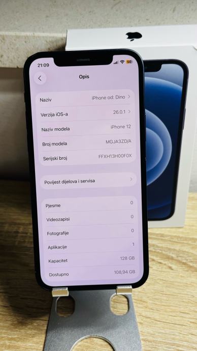Prodajem iPhone 12 Black od 128GB, mobitel je potpuno ispravan, ugrađena nova baterija originalne apple kvalitete za koju posjedujem račun.