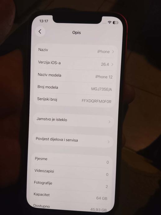 Prodajem oscuvan iPhone 12 Red 64 GB kapacitet baterije 75% mobitel je oscuvan i u dobrom stanju kontakt 0919076054
