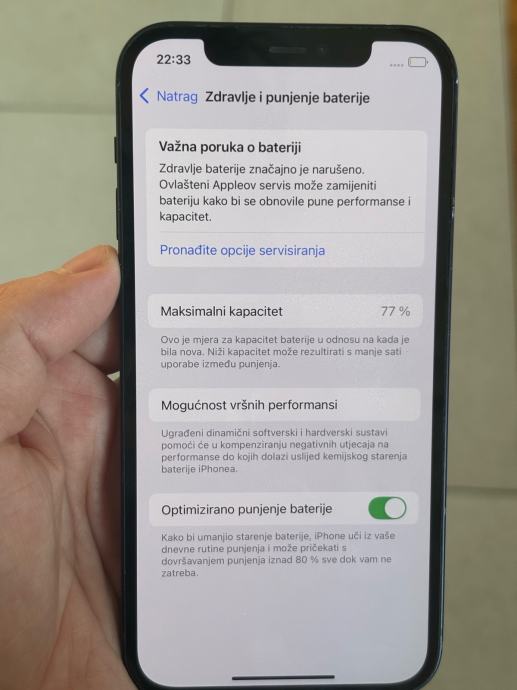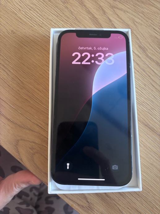 Prodajem rabljeni iPhone 12 u crnoj boji s 64GB interne memorije. Radi se o Appleovom modelu koji dolazi s originalnom kutijom. Zdravlje baterije 77%. Nije koristen dugo, trebalo bi provjeriti/ocistiti mikrofon jer se losije cuo preko poziva. Bez punjaca.