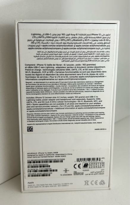 Kutija sa papirima za Iphone 12, Green, 64GB, cijena 10€, moguce preuzimanje u Zagrebu ili slanje po dogovoru.