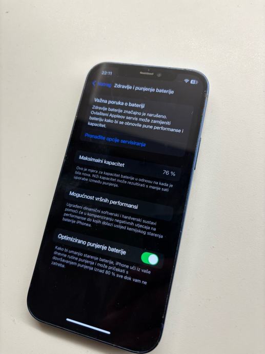 Maksimalni kapacitet baterije je 76% i dalje traje uz novu bateriju kao nov.