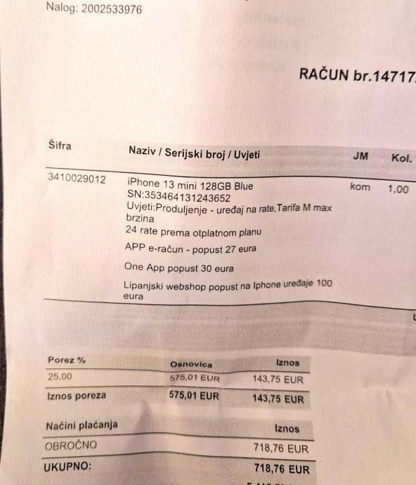 iPhone 13 mini 128 GB Blue -"NOVO"