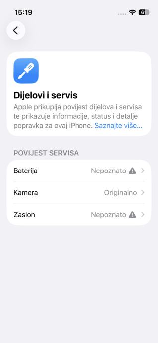 Ekran je ZAMJENSKI, nije originalni OLED i vizualno je slabije kvalitete (veći notch, nešto drugačiji prikaz). Ne radi mu proximity senzor (ne gasi se ekran prilikom poziva). Cijena uređaja zbog toga je prilagođena.