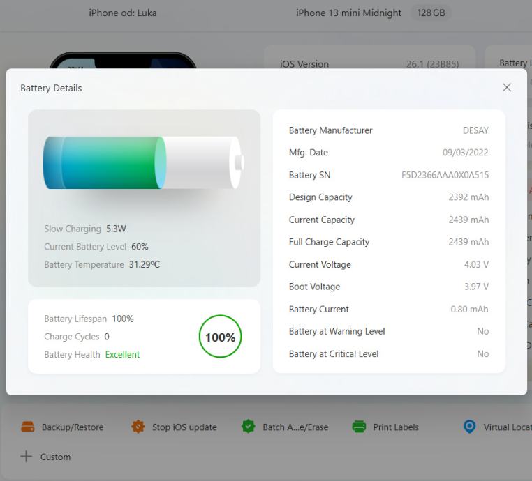 iPhone 13 Mini 128 GB Midnight – 100% baterija, super stanje