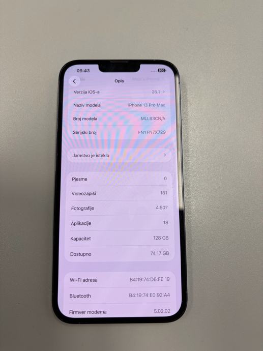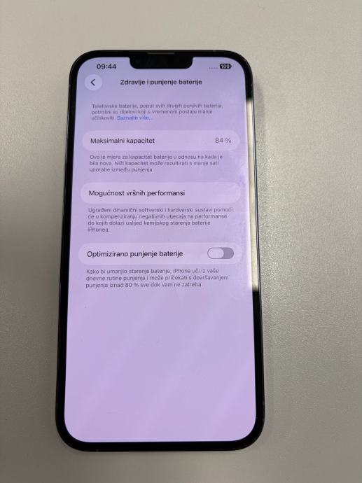 Ekran ima lagane ogrebotine od koristenja (vidljivo na slikama), bez puknuca. Straznja strana i rubovi u dobrom stanju, utor za punjenje uredan i ispravan. Baterija je na 84% zdravlja, sve funkcije rade bez problema (Face ID, kamera, zvuk, tipke).