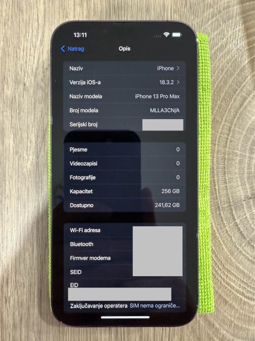 Uređaj vraćen na tvorničke postavke i uklonjen s iClouda i FindMy.