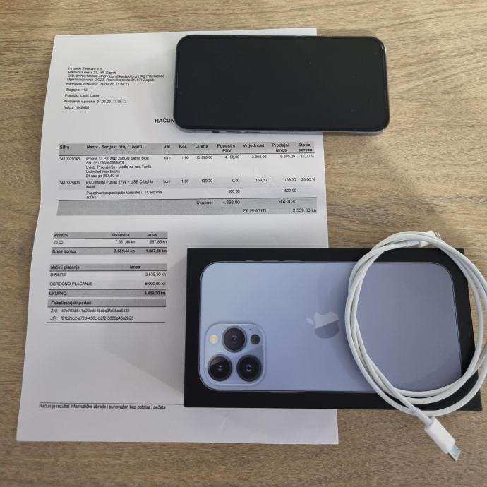 Iphone 13 Pro Max 256 GB, kupljen 24.06.22. u Tcom. Garancija još 9 mjeseci. Na uređaju nema niti jedan trag korištenja, na njemu je zaštitna maska i staklo od prvog dana koje mi je žao skidati. Zdravlje baterije 100%. Uz uređaj kutija sa pripadajučom opremom i račun. Molim bez zamjena.