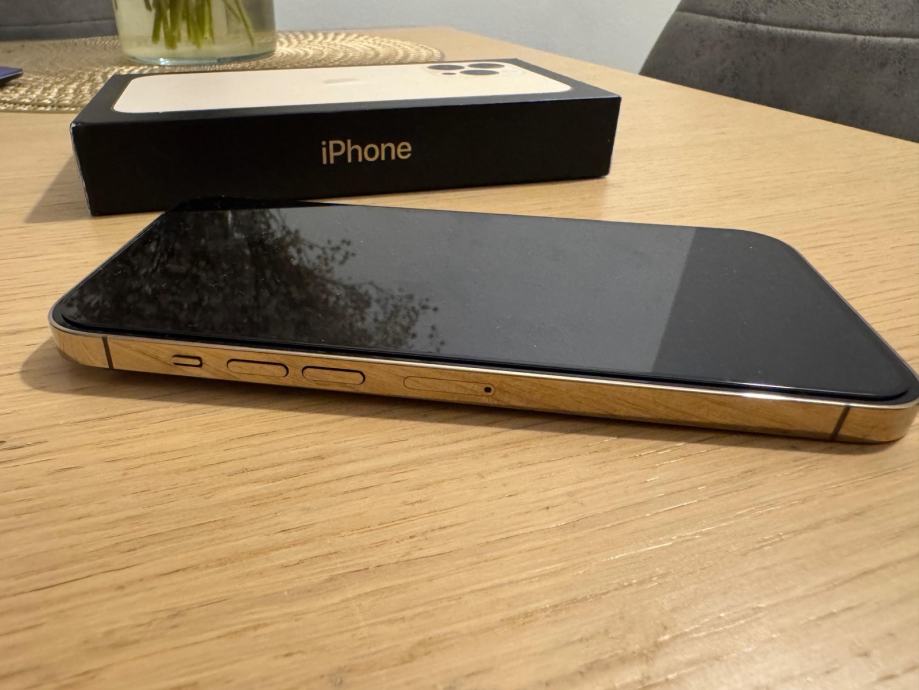 Prodajem iPhone 13 Pro Max, zlatne boje, 128 GB. Uređaj je u izvrsnom stanju, bez ogrebotina i oštećenja. Na ekranu je postavljeno zaštitno kaljeno staklo.