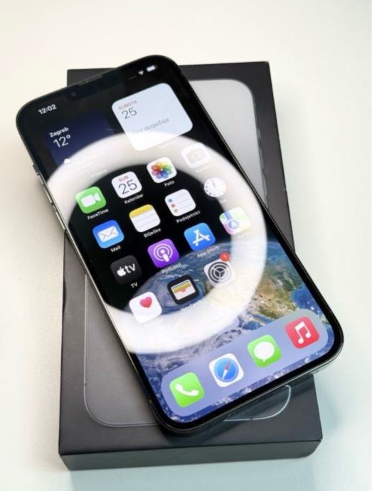 Prodajem Apple iPhone 13 Pro Max u grafitnoj boji. Radi se o Appleovom top modelu iz 2021. godine s velikim 6,7-inčnim Super Retina XDR zaslonom i trostrukom kamerom koja uključuje ultraširoki, široki i telefoto objektiv. Uređaj dolazi s originalnom kutijom