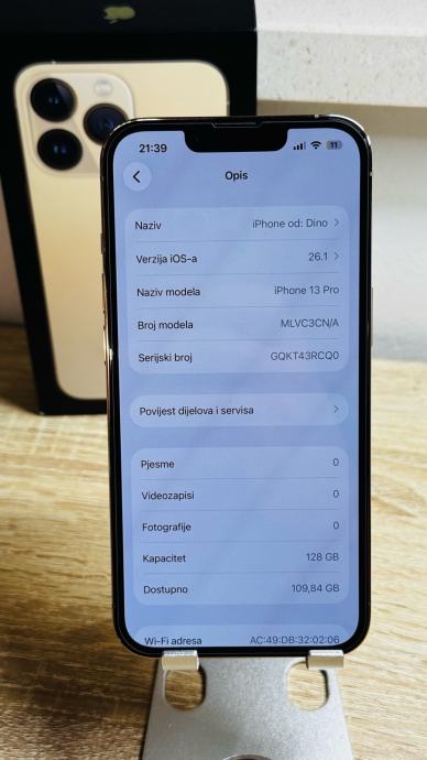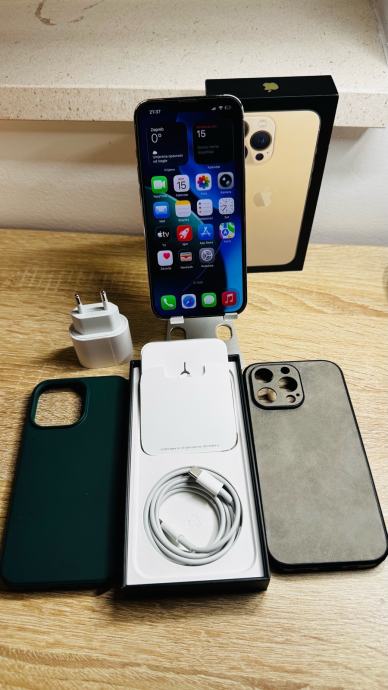 Prodajem iPhone 13 Pro Gold od 128GB, mobitel je potpuno ispravan u top stanju, bez tragova korištenja sa ugrađenom novom baterijom.