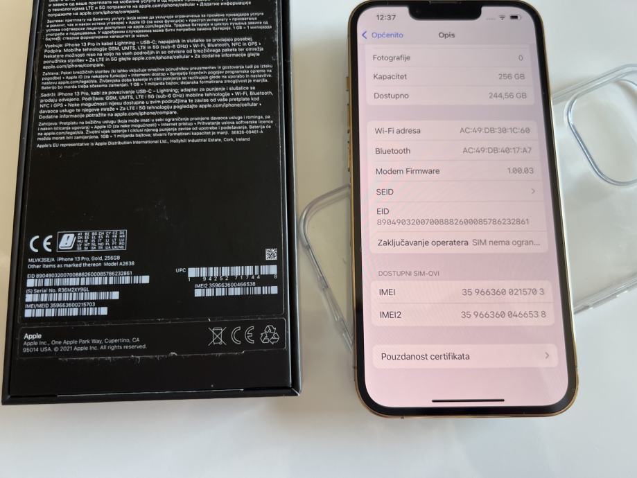 Prodajem Iphone 13 Pro 256GB boja zlatna,stanje 10 od 10,baterija 100%,radi na
