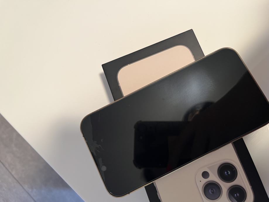 Prodajem Iphone 13 pro, zlatne boje, 128 gigabajata. Mobitel je star godinu dana. Telefon izvrsno radi i izgleda, međutim jedina mana je puknuto prednje staklo u gornjem dijelu. Kamera nije ostećena i radi. Razbijeno prednje staklo no bez ikakvih drugih ogrebotina ili nedostataka. Zdravlje baterije je 87%.