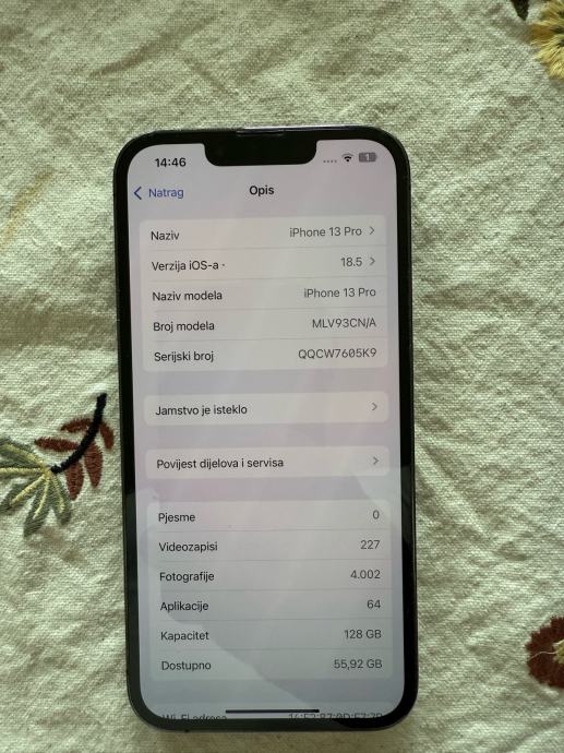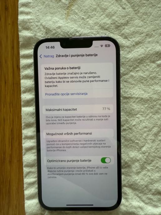 Prodaje se odličan , potpuno ispravan iphone 13 pro. Mobitel nema niti jednu crticu na ekranu. Od prvog dana u maskici sa kaljenim staklom. Baterija je 77%. Može izdržati 12h bez punjenjanja. Baterija i mobitel nikad nisu popravljani i otvarani. Prodaje se jer je kupljen novi uređaj. Prvi vlasnik.