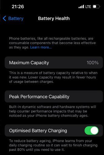 Zdravlje baterije 100% (korišten povremeno kao drugi mobitel).