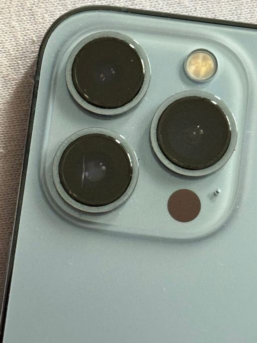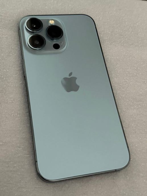 Prodajem Apple iPhone 13 Pro u odličnom stanju s prepoznatljivim trostrukim kamera sustavom. Uređaj dolazi u elegantnoj plavo-zelenoj boji koja privlači poglede i pokazuje Apple-ov prepoznatljiv dizajn.