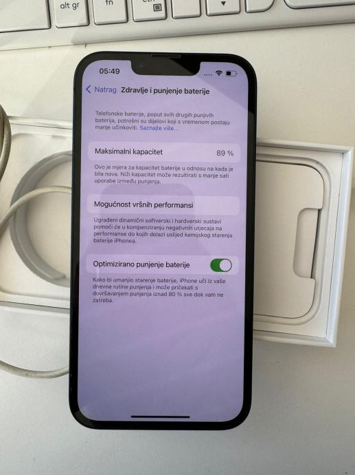 Uređaj je korišten, ali je maksimalno očuvan. Nema nikakvih oštećenja ili ogrebotina na zaslonu ili poleđini jer je uvijek bio opremljen zaštitnim staklom i maskicom. Nikada nije popravljan, te funkcionira besprijekorno. Zdravlje baterije 89%.