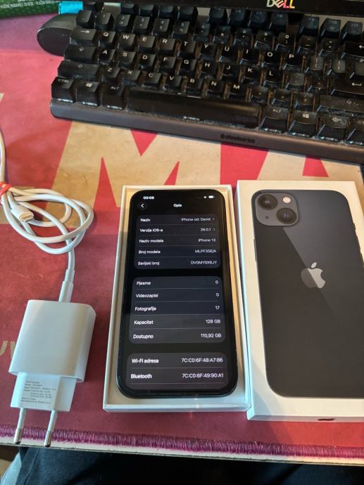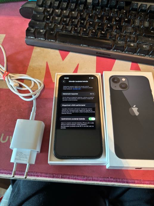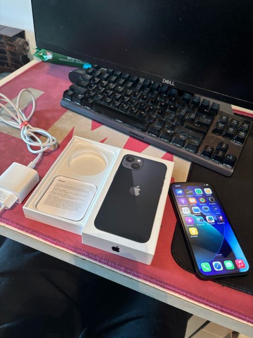 Prodajem Apple iPhone 13 u Midnight (tamno plavo-crnoj) boji s 128GB interne memorije. Dolazi s originalnom kutijom i kabelom za punjenje. Kapacitet baterije 84%