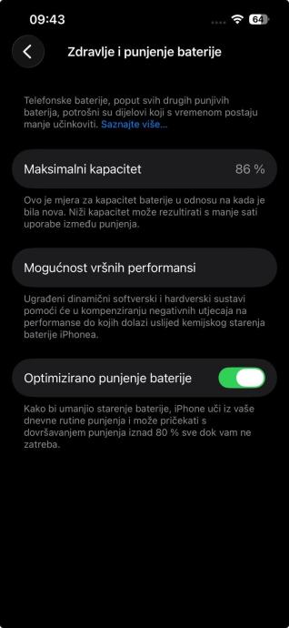 Mobitel je u dobrom stanju, korišten s pažnjom. Na donjem lijevom kutu ima sitno oštećenje (vidljivo na slikama), no sve funkcionira. Zdravlje baterije je na 86%. Od prvog dana ima zaštitno staklo koje je i dalje na njemu.