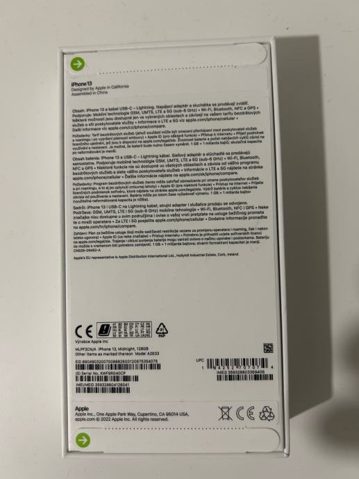 Iphone 13, 128 GB, midnight, zapakiran i kupljen 04.12.2022. kod A1. Cijena 6000 kn.