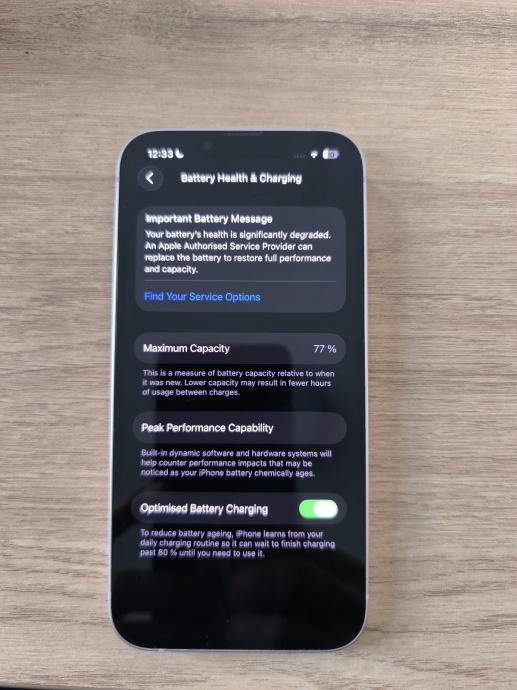 Telefon je jako dobro očuvan, gotovo bez ikakvih oštećenja,minimalne ogrebotine na ekranu. Zdravlje baterije 77%. Uz telefon ide kabel za punjenje i četiri maskice.