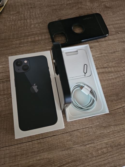 Prodajem iPhone 13 s 128 GB memorije u crnoj boji (Midnight). Uređaj dolazi s originalnom kutijom, Lightning kabelom, iglom te zaštitnom maskom.