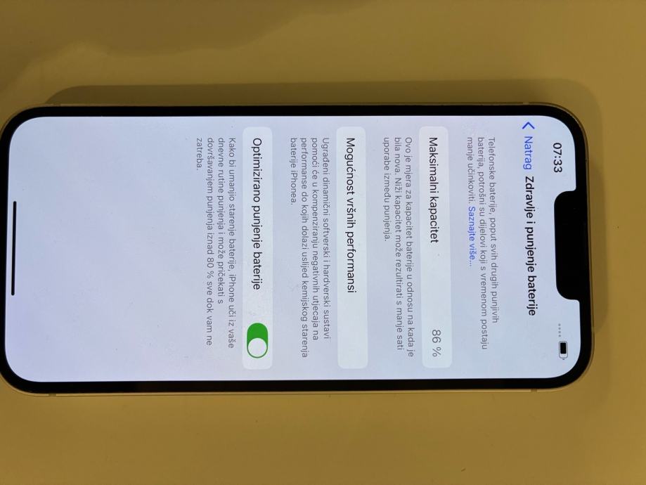 IPhone 13 128GB bijeli. Baterija 86%. Bez ogrebotine. Orginalna žica za punjenje. Orginalna kutija. Sve radi. Nikad mjenjano išta na telefonu. Osobna dostava u ZGB.