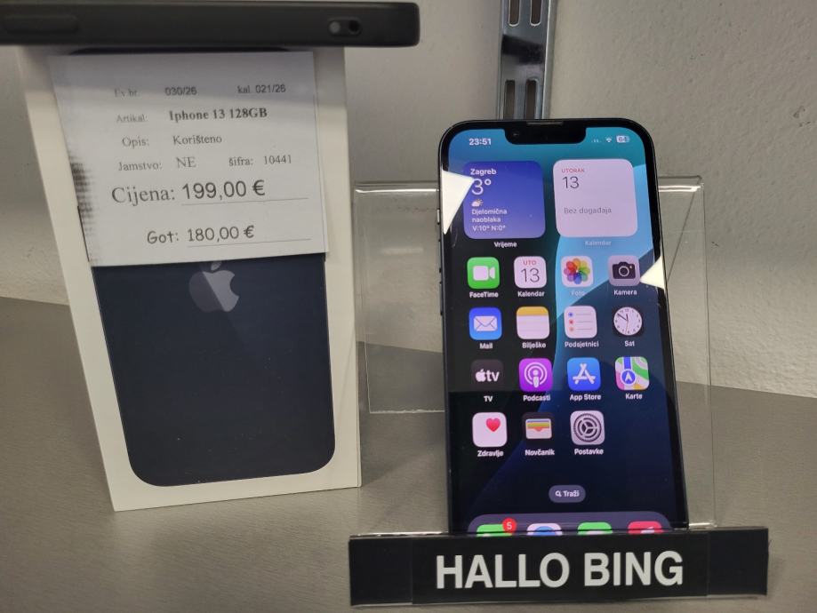 Iphone 13 128gb u vrlo dobrom stanju. Baterija 74%. Pregledan, ispravan. Besplatna dostava BoxNow.