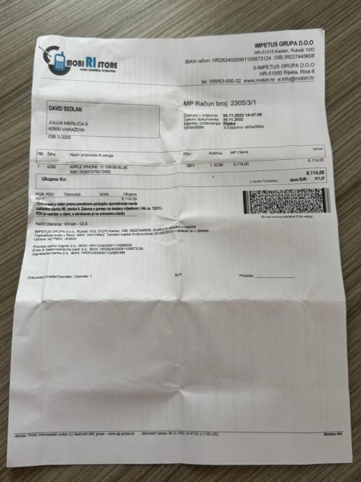 Uz mobitel dobivaš kompletnu opremu - originalnu kutiju, račun, punjač, MagSafe punjač i 3 maskice.