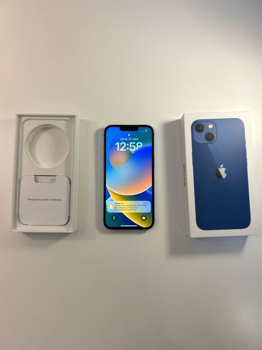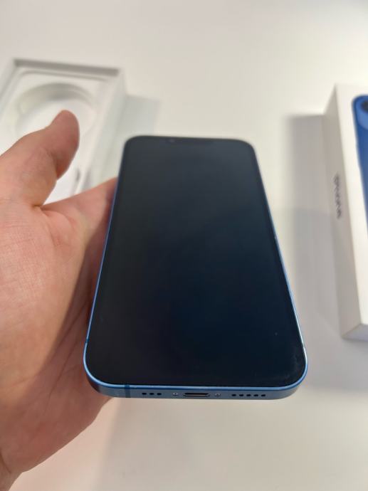 Prodajem iPhone 13 Blue, model sa 128GB koji je star godinu i pol dana. Zdravlje baterije mu je 87%.