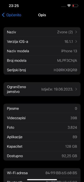 Prodajem iPhone 13 Midnight 128 GB u dobrom stanju, jamstvo do 6/23, baterija 100 %