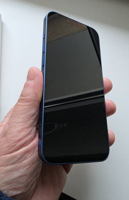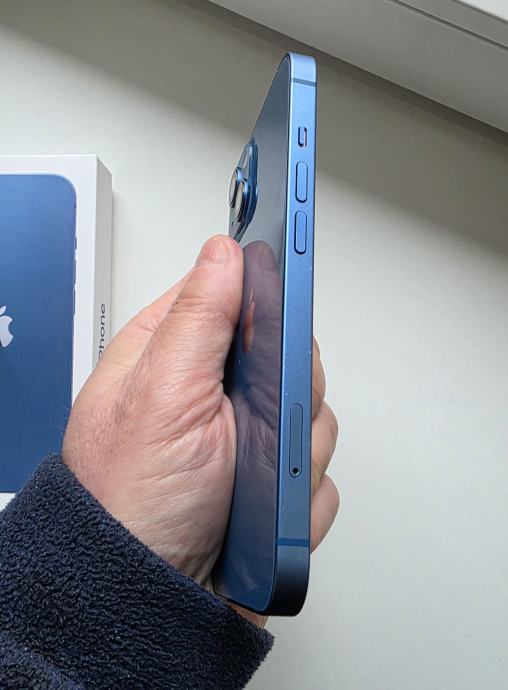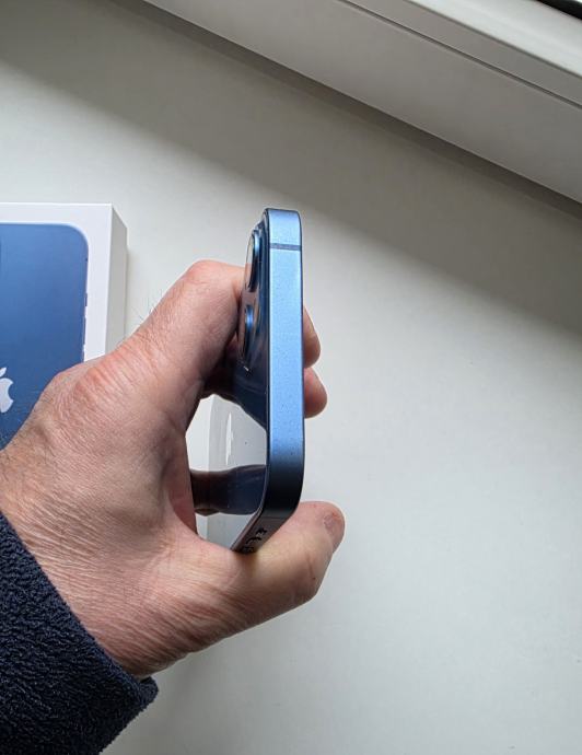 Mobitel je kao nov, 128GB memorije, plava boja.
