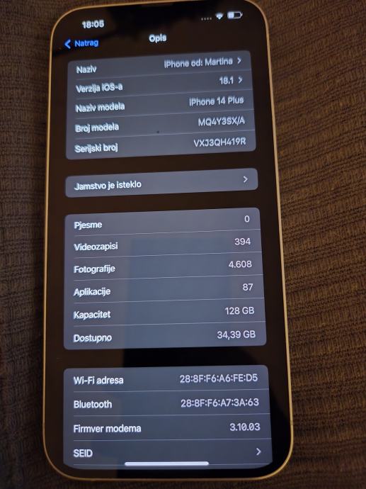 Prodajem dvije godine star iphone 14 plus 128gb bijeli.