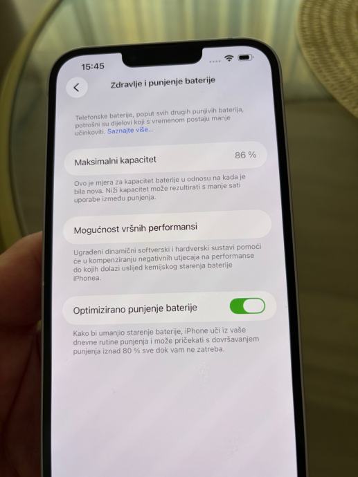 Zdravlje baterije 86%.